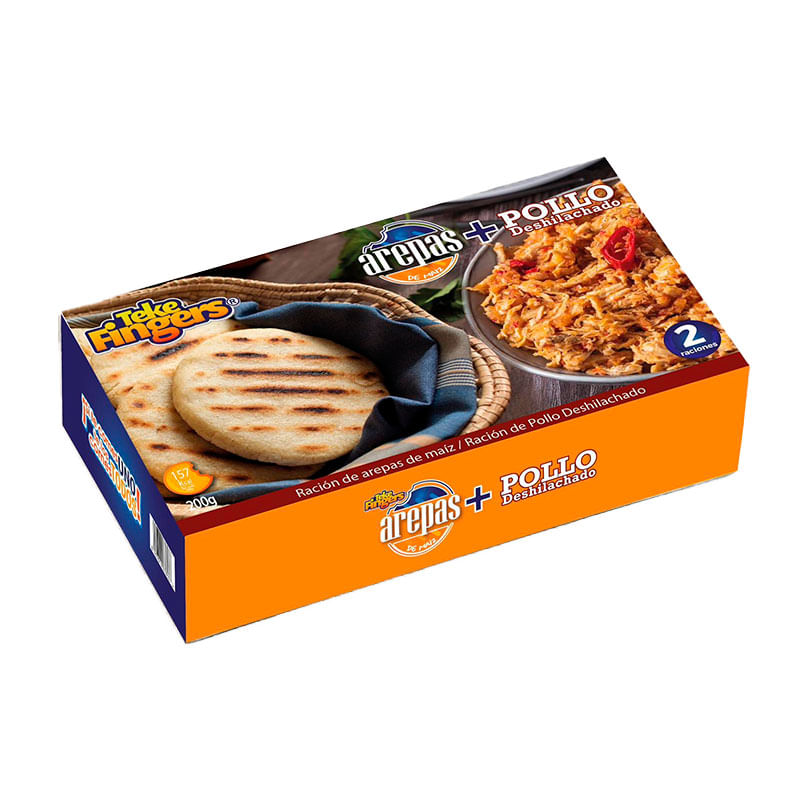 En aquest cas, t'emportaràs a casa un pack amb 2 arepes i farcit de pollastre desfilat, perquè les preparis amb la salsa que més t'agradi.