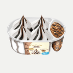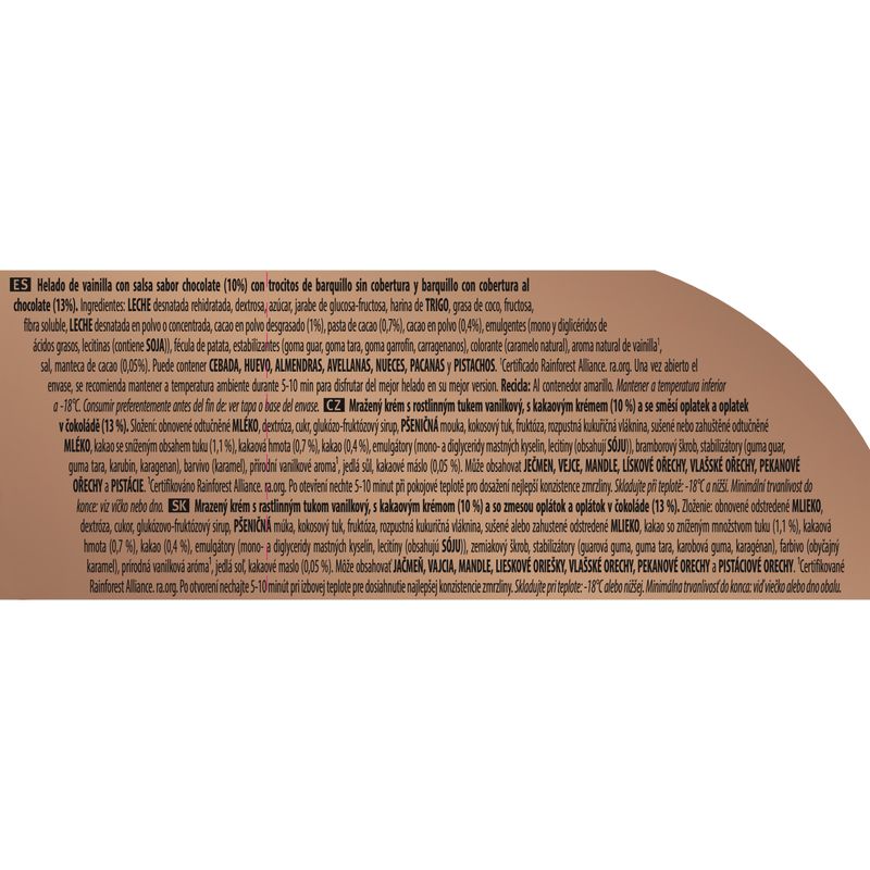 Terrina Carte d'Or de gelat de vainilla i xarop de xocolata amb trossets de galeta sense i amb cobertura de xocolata. La barreja perfecta entre la suavitat del gelat i els tocs cruixents de galeta.