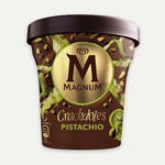 Prueba el nuevo Magnum Crackables Pistachio, una tarrina helada de cremoso sabor a pistacho con chocolate crujiente. ¡Una delicia!